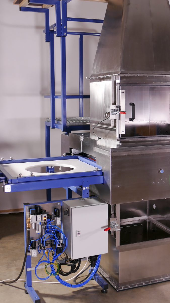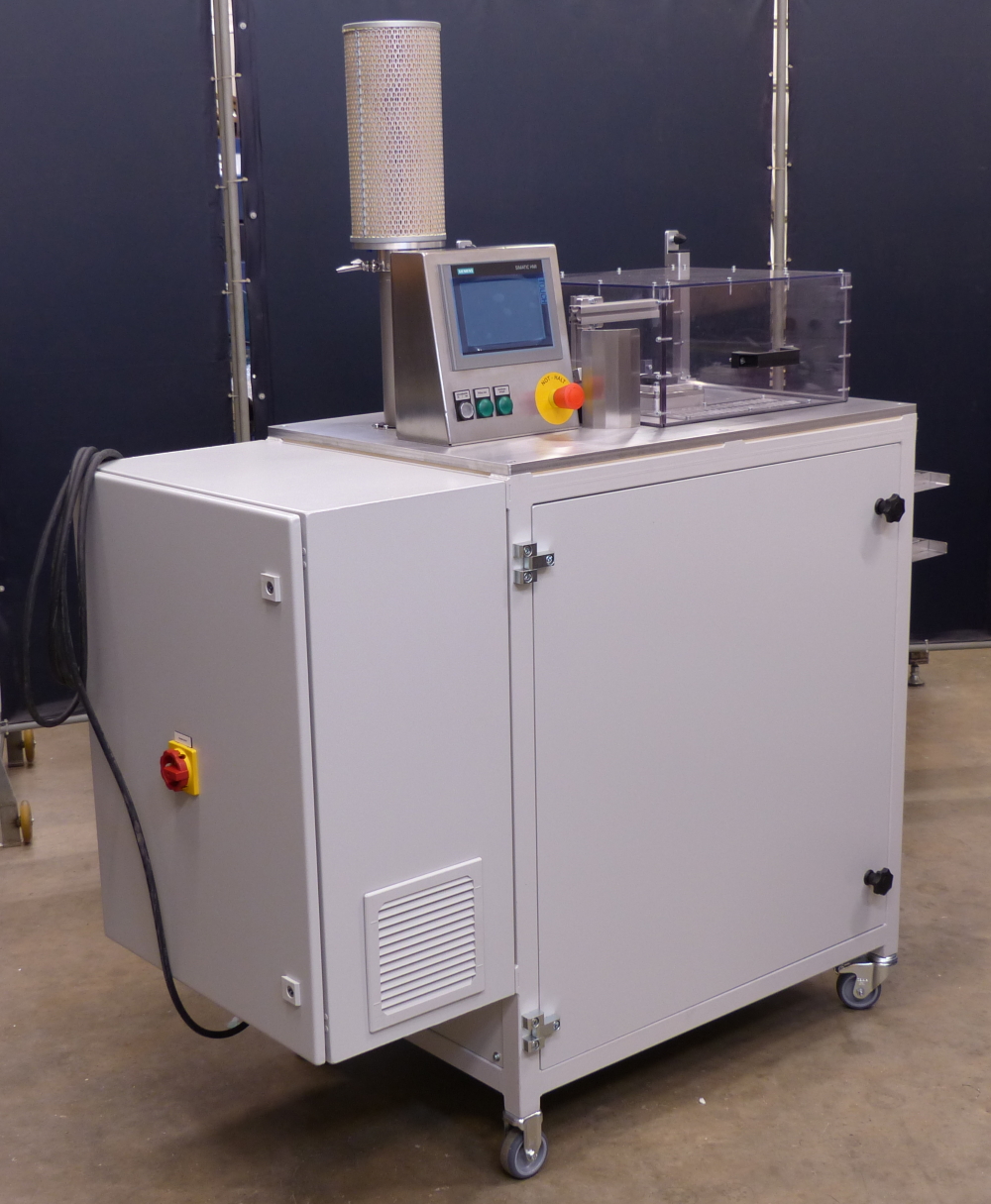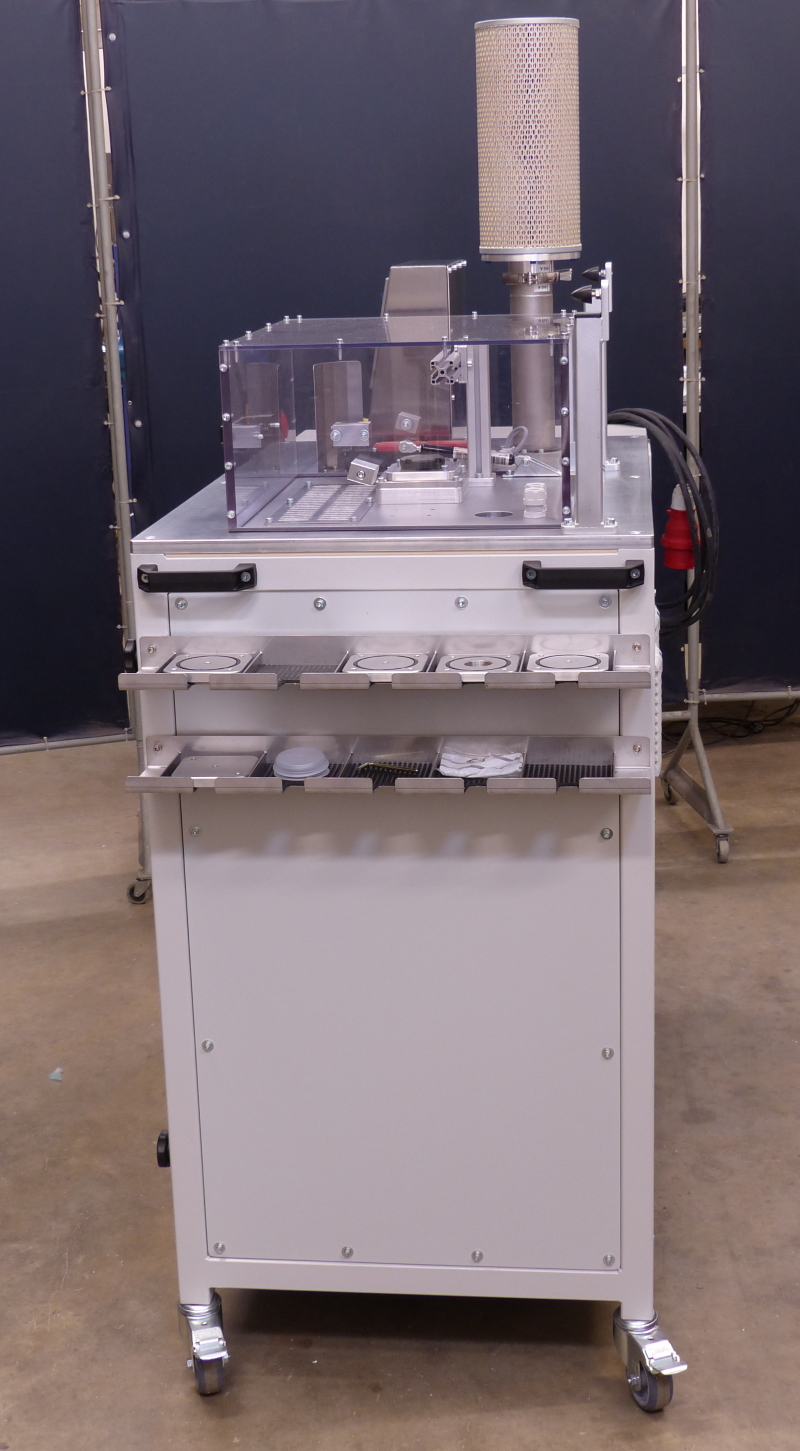 Dieser Prüfstand zur Prüfung von Luftfiltern stellt eine Optimierung in Sachen Strömung, Dichtheit und Ergonomie dar. So verhindert der langgestreckte Diffusor Störungen im Strömungsverlauf. Aufblasbare Dichtungen wirken direkt auf die Aufnahmeplatte und sorgen für große Dichtheit. Besonders bedienerfreundlich wird dieser Prüfstand durch das bewegliche, pneumatisch heb- und senkbare Oberteil sowie das Shuttle für die Prüfplatten. Breite, gut einsehbare Sichtfenster geben den Blick frei auf den Vorgang im Inneren.